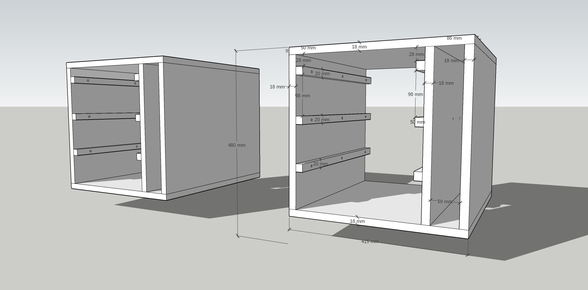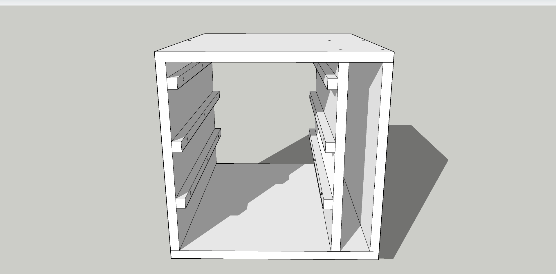 There are batons within to store up to 3x 10cm tall Ikea ‘Trofast’ drawers, or 1 x 10cm & 1x 23cm ‘Trofast’ drawers.